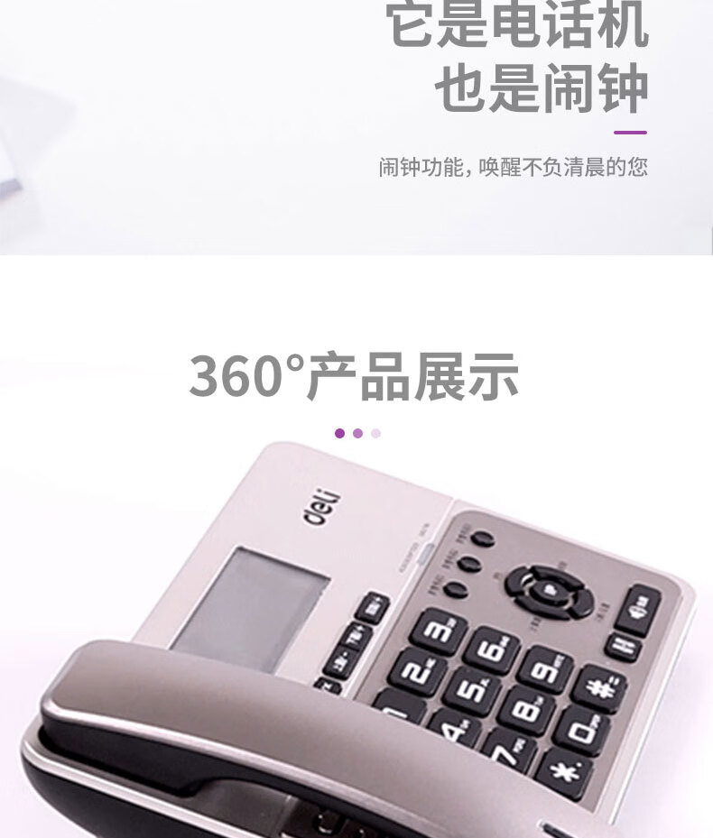 • 商品名称:得力(deli) 796电话机/固定电话/座机 办公家用 金属灰