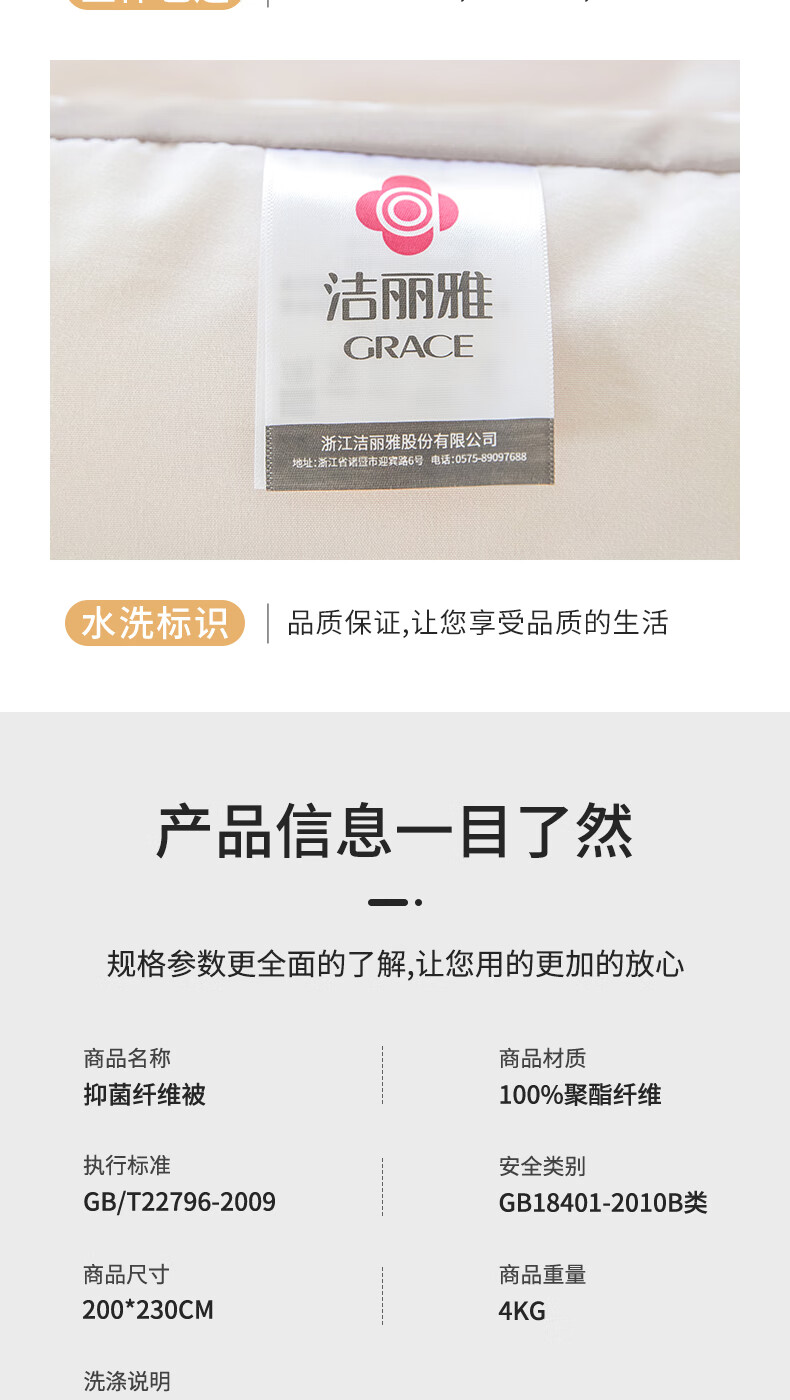 洁丽雅(Grace) 被子酒店抑菌被芯春秋冬双人加厚被芯棉被学生盖被褥四季被子 200*230cm 8斤