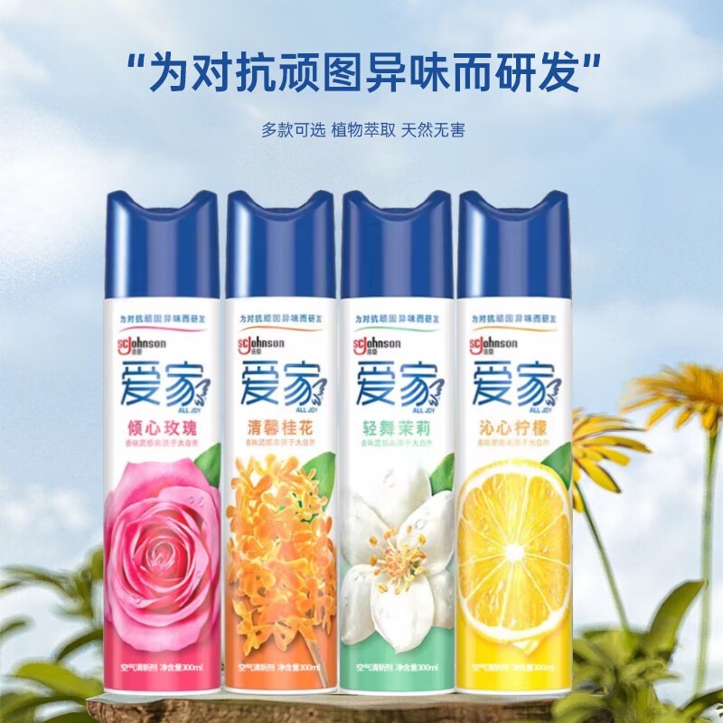 庄臣爱家空气清新剂家用持久留香汽车厕所喷雾剂300ml清香愉悦 沁心柠檬