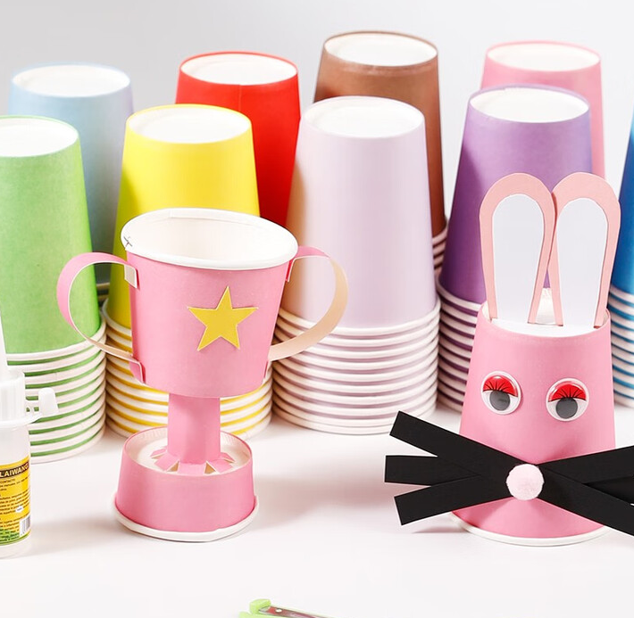 叁沃 diy彩色纸杯一次性手工纸杯加厚白色红色纸杯幼儿园儿童手工美术创意材料