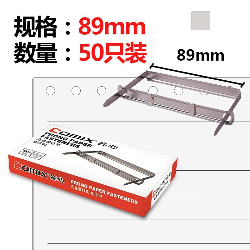 齐心(COMIX)B3749 耐用金属装订夹 两孔夹 凭证装订夹条 50个/盒 金属装订夹 B3749