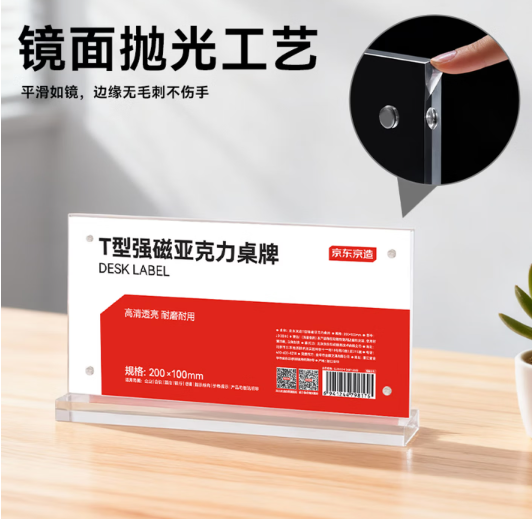 创新T型200*100mm强磁吸附亚克力价格展示牌立牌广告牌 会议姓名牌座位牌席位卡办公用品透明单个装