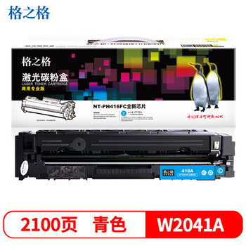 格之格W2041A 激光碳粉盒 NT-PH416FC全新芯片 (适用HP Pro M454dn; MFP M479dw等) 青色 2100页 商用专业版