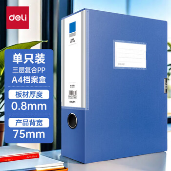 得力(deli)1只75mmA4塑料文件盒档案盒 加厚资料盒财务凭证 考试收纳 5684