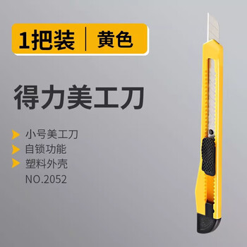 得力美工刀壁纸刀小号裁纸刀小刀手工刀拆箱刀拆包裹合金钢刀2052 【1把】小号黄色2052