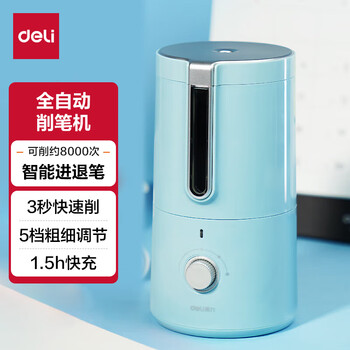得力全自动电动转笔刀削笔器卷笔刀 可削直径8mm三角笔杆六角彩铅铅笔 开学新年礼物 蓝色VA8