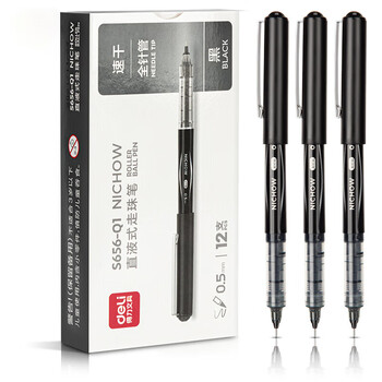 得力(deli)S656-Q1直液式走珠笔中性笔0.5mm全针管12支/盒黑色