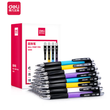 得力(deli)圆珠笔中油笔 0.7mm子弹头按动笔原子笔 s303 蓝色 10支装