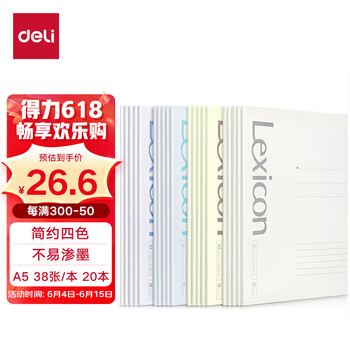 得力(deli)20本A5/38张无线胶装软抄本 记事本/ 工作笔记本子/ 日记本文具办公用品 7983高考加油励志礼物