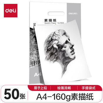得力(deli)A4素描纸50张 160g绘画纸彩铅画 美术写生手绘临摹学生用初学者速写铅画纸 73942毕业礼物