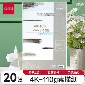得力(deli)4K20张素描纸 110g素描本绘画纸彩铅画 美术写生手绘临摹初学者速写铅画纸 4开73608毕业礼物