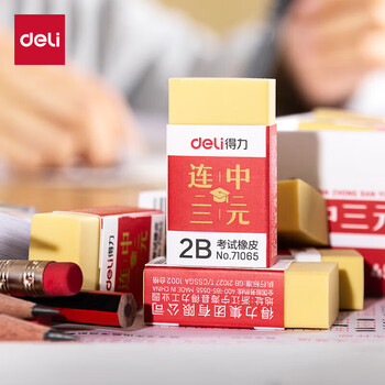 得力(deli)71065-45个连中三元系列学生中考高考考试橡皮擦 黄色