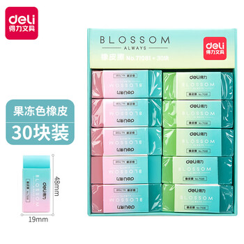 得力(deli)71081橡皮果冻色半透明橡皮擦30块装美术绘图考试素描可爱儿童学生文具【71081橡皮/30块】