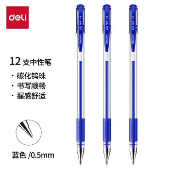 得力(deli)6600ES-0.5mm经典办公子弹头中性笔 水笔签字笔蓝色12支/盒