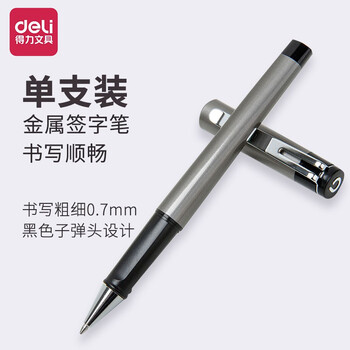 得力(deli) 中性笔商务金属签字笔中性笔水笔黑色子弹头0.7mm单支 S96单支金属签字笔0.7mm