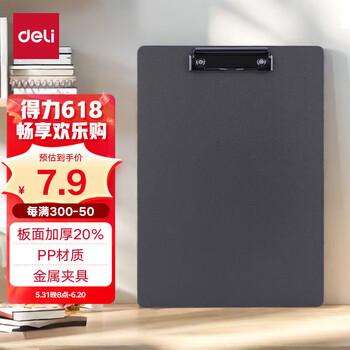得力(deli)A4书写板夹 金属强力夹塑料文件夹 多功能写字垫板 办公用品64502灰色