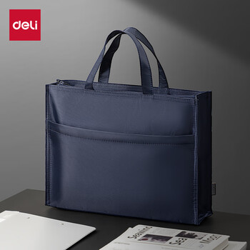 得力(deli)办公手提袋会议包事务包/文件包 加厚大容量商务拉链袋公文包 缎面材质防水耐磨 63762蓝色