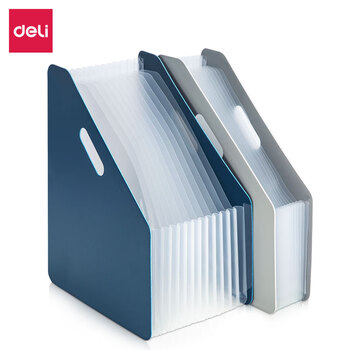 得力63952 13格A4立式大容量风琴包多层可伸缩文件框试卷收纳文件保护浅灰色 1个装