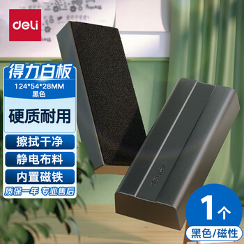 得力(deli)124*54*28mm白板磁性白板擦黑板擦 黑色50160