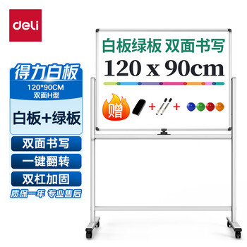 得力高端系列白板绿板双面支架式白板120*90cmH型可移动可翻转磁性家用教学办公白板黑板写字板50095