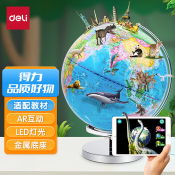 得力(deli)AR智能 30cm大号地球仪 语音讲解带灯 3D立体学习 地理启蒙开学创意礼品五一儿童生日礼物 18133
