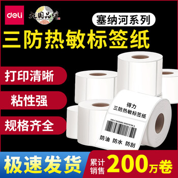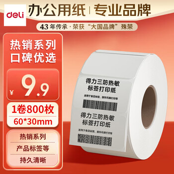 得力(deli)珊瑚海60*30mm 800张*1卷 三防热敏标签打印纸 食品服饰材料 不干胶打印纸 条码标签纸12017