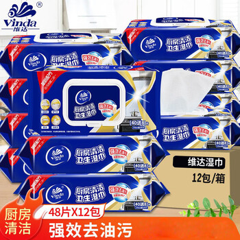 维达(Vinda)厨房湿巾 卫生清洁 48片/包*12包 强效去油污 整箱出售 VW4002