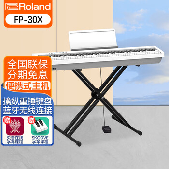 Roland罗兰电钢琴FP30X 88键重锤 便携式电子钢琴 成人儿童初学者入门 FP30X-WH白色+便携X架+单踏板