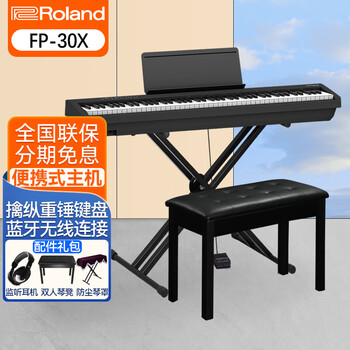 Roland罗兰电钢琴FP30X 88键重锤 便携式电子钢琴 成人儿童初学者入门 FP30X-BK黑色+稳固U架+单踏板+配件礼包