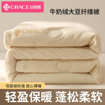 洁丽雅 被子被芯 两面绒毛毯被 加绒冬被被子加厚盖毯被子两用 单双人保暖被褥 米白色150*200cm7.8斤