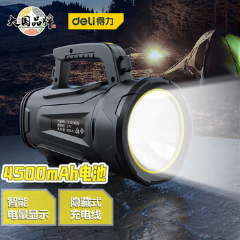 得力(deli)大功率手提工作灯 LED强光手电筒远射探照灯 充电式应急大灯3600mah DL551300A