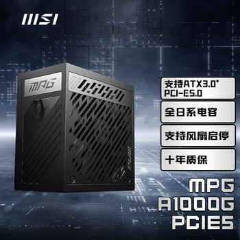 微星(MSI)额定1000W全模组电脑电源(80PLUS金牌/支持RTX3060/3070/3080/十年保障/全日系电容)MPG A1000G