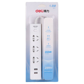 • 商品名称:得力(deli)插座新国标接线板插线板安全门保护办公家用拖线板 带USB 18217(3组合+2USB1.8米线)