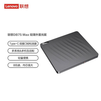 • 商品名称:联想(Lenovo) 8倍速 USB2.0 外置光驱 DVD刻录机 移动光驱 黑色 DB75 MAX(USB+Type-c双接口) 全国联保
