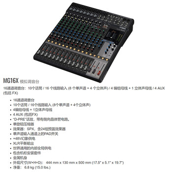 雅马哈(YAMAHA) MG系列调音台 多路调音台 多路控制 带效果 专业舞台调音台 雅马哈 MG16X调音台(带效果)16路