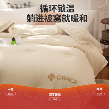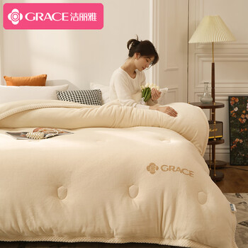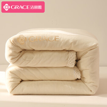 洁丽雅 被子被芯 两面绒毛毯被 加绒秋冬被子加厚盖毯被子两用 单双人保暖被褥 米白色180*220cm7.8斤