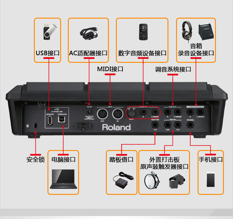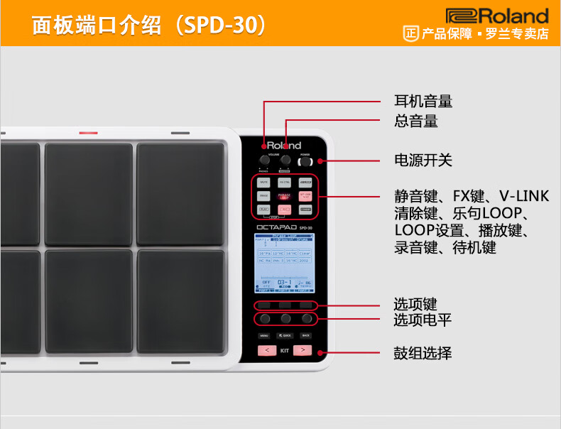Roland罗兰电鼓打击板SPD系列电子鼓采样打击垫手鼓 SPD-1K底鼓打击板+全套豪礼