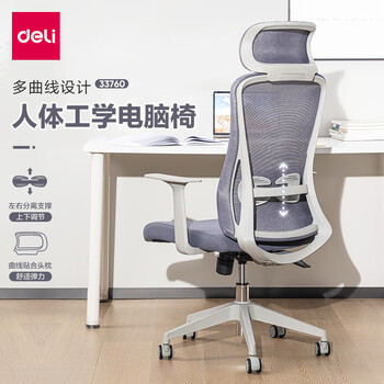 得力 deli 双层网布人体工学电脑椅 家用舒适 居家风格办公椅 33760 灰