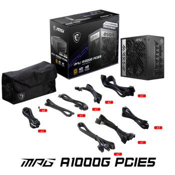 微星(MSI)额定1000W金牌全模组电脑电源(ATX 3.0标准/十年保障/全日系电容/PCI-E5.0接口)适配RTX4090显卡
