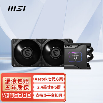 微星(MSI)战神S280 280一体式CPU水冷散热器 支持LGA1700扣具 Asetek七代方案/2.4英寸IPS屏/定制高性能风扇
