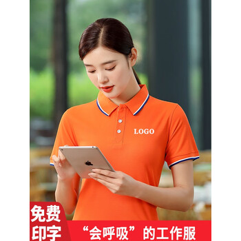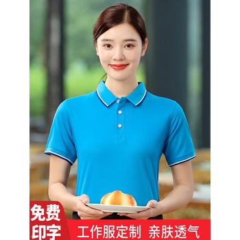 鲁杰罗 夏季餐饮企业工作服短袖T恤定制男POLO衫工装上衣订制印logo刺绣 藏青 S