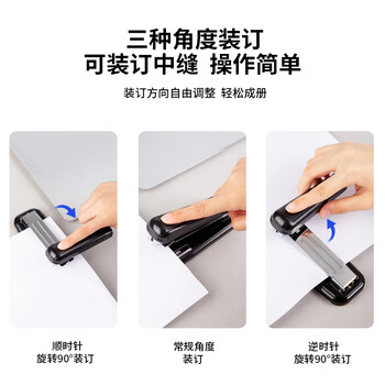 得力(deli360度可旋转订书器订学生作业本 定书机中缝骑马钉订书机 【升级款】0828黑色 单只