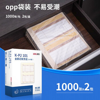 得力22002KPJ101金额记账凭证(混)(2包/箱) A4金额记账凭证激光打印纸 财务用品