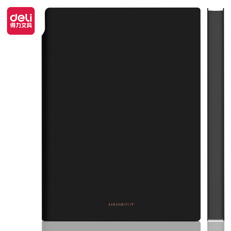 得力(deli)A5/112张莫兰迪色系可插笔皮面本新年礼物 肤感雅致记事本日记本笔记本子文具办公用品 22290黑色