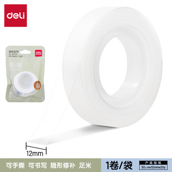 得力(deli)隐形胶带 磨砂透明神奇错题胶带 无痕隐形 可黏错题 办公用品 12mm*20y 1卷/包 30125