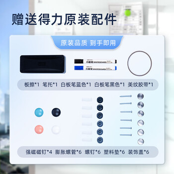 得力(deli)玻璃白板200*100cm超白玻璃白板磁性钢化悬挂式办公会议写字板黑板(白板擦 白板笔 磁钉)50047
