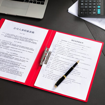 得力(deli) A4中国红文件夹 单/双强力资料夹文件收纳夹 试卷资料朗诵签约板夹 1个装 单强力夹 64510