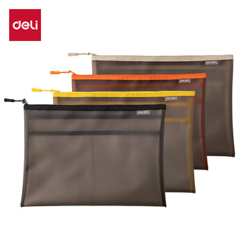 得力(deli)TPU拉链袋 资料袋小学生科目分类文件袋拉链袋 试卷文件凭证收纳 黑色64867
