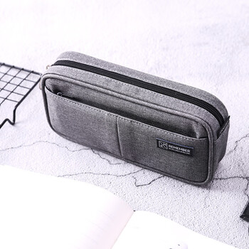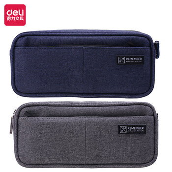 得力大容量笔袋简约风格可收纳20cm直尺小学生学习收纳笔袋 66782简约袋鼠笔袋(深灰)