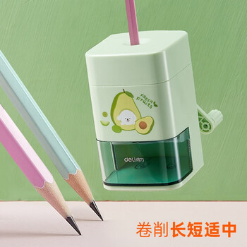 得力(deli) 卷笔刀手摇铅笔削笔器铅笔刀小学生刨笔机儿童卡通自动进铅转笔刀美术生可用 【省力款-上部进铅】水蜜桃 71154